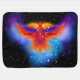 Fiery phoenix flying through space on a blue and purple nebula cloud. The sparkling cluster of stars crowning the mythical bird's head forms the phoenix constellation. Horizontal orientation. ♡ Idyllfire