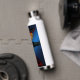 The bottle looks even better in real life. The ice cubes I put in lasts all day! I have my bottle with me all the time. It's summer and having something cold to drink feels amazing. With this bottle I always have something super cold. I have only tried the hot drink once and it lasted a long time as well. The color blue is a navy blue and the white printed on it is vibrant. It printed perfectly. I love my personalized smile water bottle.