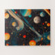 Transform any room with this vibrant puzzle featuring a retro-futuristic depiction of planets, moons, and colorful cosmic orbits. The intricate space design captures the wonder of astronomy, making it a perfect centerpiece for living rooms, bedrooms, home offices, or creative studios. The artwork uses vivid colors and geometric orbit lines, giving a unique, modern touch to your decor. This design is also ideal for other products like throw pillows, wall art, or apparel if you want to bring a cohesive space-inspired style throughout your home or business.