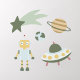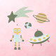 Space Robot Rocket Pastel Kids Galaxy Wall Decal