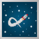 Rocket launch to space illustration on a blue background.
