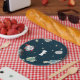 Outer space theme paper plates for your kid's first birthday celebration. The illustration has some planets, stars and a rocket. Illustrated and designed by Patricia Alvarez.