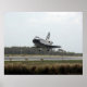 Space Shuttle Discovery approaches landing on Runway 15 of the Shuttle Landing Facility at NASA's Kennedy Space Center, concluding the 13-day, 5.3-million mile journey of the STS-119 mission to the International Space Station. Onboard are NASA astronauts Lee Archambault, commander; Tony Antonelli, pilot; Steve Swanson, Richard Arnold, Joseph Acaba, John Phillips and Sandra Magnus, all mission specialists. The main landing gear touched down at 3:13:17 p.m. (EDT) on March 28, 2009. The nose gear touched down at 3:13:40 p.m. and wheels stop was at 3:14:45 p.m. During the mission, Discovery's crew delivered and installed the final pair of large power-generating solar array wings and the S6 truss segment to the starboard, or right, side of the station and accomplished important tasks to prepare the station for future upgrades and additions later this year.