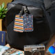 Luggage tag for kids with a space-themed pattern with rocket ships, planets, and shooting stars, and sloth astronauts. Add your child's name in charming block letters.