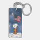 This Peanuts artwork celebrates the 50th Anniversary of the 1969 Apollo 10 orbit of the moon and the Apollo 11 moon landing. This design features Snoopy in his orange space suit flying the American flag.