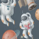 A fun, modern and cool seamless repeating pattern filled with spacemen, planets, shooting stars, alien ufo's and a dark blue background. This trendy galaxy inspired design will transform any room whether it be a creche, nursery, hallway, living room; bathroom or bedroom. Ideal for kids and adults alike. Great for decoupage projects too.