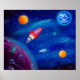 This quality print of my original acrylic painting, "Space Travel", features a little boy and his cat on their amazing space travel in a red rocket… A perfect decoration for any children´s room. | ©2014 Amazing Journey Art, www.amazingjourneyart.com