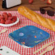 This blue space-themed aesthetic napkin set features various planets, stars, a rocket, asteroids, meteors, and even a UFO!