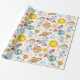 Space themed wrapping paper with planets, astronaut and other space elements.