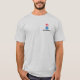 Tee fits perfect. The silver color is a nice flat gray neutral that goes well with black pants or khakis. The black ink is black. The left-chest positioning is good when you want a not-plain shirt but aren't up for a really florid design all day.