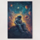 Amazing design for sci-fi enthusiasts and space explorers! This design offers an illustration of a lonely astronaut sitting on a space rock against a nebula.