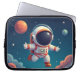 This is a laptop bag containing an astronaut wandering in space.