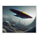 Digital painting of a huge spaceship arriving to abandoned city on an alien planet. Sci-fi art.