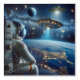 Spaceships and an Astronaut in Outer Space Acrylic Print