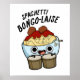 Spaghetti Bongolaise Funny Food Pun features a cute bowl of spaghetti playing bongos. Perfect pun gift for family and friends who love cute spaghetti puns.