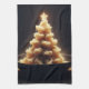 A whimsical Christmas tree crafted entirely of steaming spaghetti, topped with a glowing star, sits in a black pan against a dark background. The scene is both humorous and strangely appealing, capturing the spirit of unconventional holiday cheer.