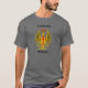 My 11 yo wore adult XL (5’7” 165#). The 8yo is small framed. She wore adult small and tied it in the back. Grandma wore adult large with long sleeve shirt underneath. Tall girl adult medium. Dark haired male adult large. Good quality dark Heather gray, Gildan brand shirt. -it was next up from basic choice and cost about $20 per shirt. Not too thick or thin. Washed and dried well, no major shrinkage. Not see-through. Can wear a bra under it fine. Screen print is just as shown and well done, front and back.