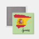 Show everyone your love for the country of Spain with this cool magnet featuring a map of Spain filled in with the colors of the Spanish flag. The font and color of the text and the background color of the product can be changed to fit your preference.