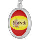 The design for this attractive pendant features a name overlying the Spanish flag, which has been neatly morphed to fit the round shape. The featured name can be changed to any name or text of your choice, creating a personalized gift for someone who loves Spain.