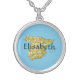 The design for this charming pendant features an editable name over a map of Spain on a sky blue background. The featured name can be changed to any name or text of your choice, creating a personalized gift for a Spanish friend or loved one. Font and background colors can also be altered as desired.