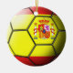 Flag of Spain embossed across a soccer ball on a two-sided ceramic ornament.
