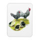 Glossy greenish black spangles adorn each feather of the beautiful Hamburg chicken. Even the little chicks are marked with black on their baby fuzz.