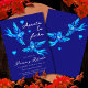 Invitación “Aparta la fecha” con colibríes en azul. Anuncia el día de tu boda con esta encantadora invitación de "aparta la fecha" inspirada en el arte mexicano. El diseño en azul cobalto, elegante y sutil, presenta dos colibríes uniéndose, rodeados de corazones, evocando amor y unión. Los colibríes, ilustrados con un toque artístico en distintos tonos de azul, le dan un toque tradicional y único a esta invitación, perfecta para una boda latina.