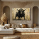 A bold acrylic watercolor art print of a powerful black bull standing his ground, painted in warm golden tones. Perfect statement piece for living rooms, offices, or western-inspired décor.