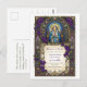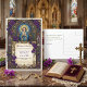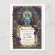 Honor your sacred union with this exquisite 'Save the Date' postcard, inspired by the timeless beauty of stained glass artistry. Featuring a serene depiction of the Virgin Mary adorned with lush purple floral arrangements and delicate grapes, this design evokes a sense of grace and spiritual significance. The elegant Art Nouveau-inspired border frames the text beautifully, making it a perfect announcement for a wedding or a religious event. This design captures the essence of enduring love and commitment, setting a sophisticated tone for your upcoming celebration.