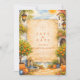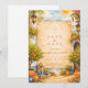 Inspired by sun-washed Spanish courtyards and old-world Mediterranean architecture, this romantic wedding design blends warm terracotta tones, lush orange trees, and classic stone details into a timeless composition. The painterly illustration evokes an intimate European setting—perfect for couples drawn to destination weddings, heritage aesthetics, or refined Old World charm.