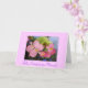 Tarjeta postal en espanol con foto de flores ( begonias) rosadas para los cumples de la mama.Personalize su mensaje! Greeting card in Portuguese for mother's birthday with picture of pink and blue flowers on pink background. "Happy Birthday mom!"; Personalize your message! Photography by Maria Santos (Lusinhas do Sul)