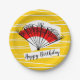 A mid-century inspired design drawn in a retro style featuring a lacy fan souvenir from a Spanish holiday on a golden stripe background. A customizable design in black, white, red and yellow for you to personalise with your own text, images and ideas. An original digital art image.