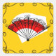Whimsical design drawn in a retro style featuring a lacy fan souvenir from a Spanish holiday on a golden yellow background. A customizable design in black, white, red and yellow for you to personalise with your own text, images and ideas. An original digital art image.