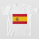 This design features the flag of Spain (known in Spanish as "España"), officially known as the Kingdom of Spain (in Spanish, "Reino de España"), which is a country in Southwestern Europe with some pockets of territory across the Strait of Gibraltar and the Atlantic Ocean. Its continental European territory is situated on the Iberian Peninsula. Moreover, the African enclaves of Ceuta, Melilla and Peñón de Vélez de la Gomera make Spain the only European country to have a physical border with an African country, in this case Morocco. The country's mainland is bordered to the south and east by the Mediterranean Sea except for a small land boundary with Gibraltar; to the north and northeast by France, Andorra, and the Bay of Biscay; and to the west and northwest by Portugal and the Atlantic Ocean respectively. The capital and largest city of Spain is Madrid. Other major cities and towns in Spain include Barcelona, Valencia, Seville (Sevilla), Zaragoza, Málaga, Murcia, Palma, Las Palmas, Bilbao, Alicante, Córdoba, Valladolid, Vigo, Gijón (Xixón), L'Hospitalet de Llobregat, Vitoria-Gasteiz, A Coruña, Elche and Granada.