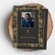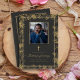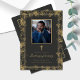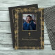 Spanish funeral program template with vintage gold vines and gold border. Easy to personalize with your loved one's photo and details and add your own funeral poems and prayers. Funeral card is 5 x 7 and printed both front and back.