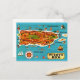 A wonderful vintage illustrated map of Puerto Rico with the place names in Spanish repurposed on a postcard.