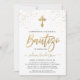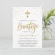 Plain white envelopes are included with paper invitations and will come to fit the invitation size you select. If you don’t need the envelopes, you may choose to not receive them by selecting the dropdown below "Envelopes" and choosing "None." If you’d like to have a design on your envelopes, you can browse all of these available envelopes to find the design that complements your Spanish Invitacion De Bautizo Gold Invitation.