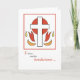 A beautiful Confirmation card in the Spanish language. It is white with red details of a cross and flames. Perfect card to send to someone who is making their Confirmation.