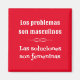 This fun magnet would be a great little gift for any student or teacher of spanish. The text is in white on a red background, to look smart on any fridge or magnetic board. This is a popular saying in spanish that helps to remember the gender of some tricky nouns. "Los problemas son maculinos, Las soluciones son femeninas". This translates as "Problems are masculine, Solutions are feminine".