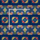 Bring the vibrant warmth of the coast to your next DIY project with this stunning Spanish Mediterranean tile pattern. This design features a classic intricate motif reminiscent of traditional Mexican Talavera or Portuguese Azulejos tiles. The pattern showcases a deep slate blue background accented by vibrant stylized florals and geometric scrollwork in rich tomato red, mustard yellow, and sage green.