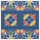 Spanish Mediterranean Blue Pattern Red Folk Art Fabric