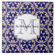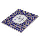 Here's a great personalized decorative addition to your kitchen, bathroom, outside patio, front door area, or anyplace in your home where a Spanish, Mediterranean style look fits right in. The tile pattern in deep indigo blue with repeating floral design makes an eye catching statement on this ceramic tile. The family monogram with the family name is easily customizable. If you have a design question or would like to see this design on another product, please feel free to contact me at jschmidtdesignworks@gmail.com.