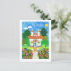 A fully customizable New Address Announcement Postcard with the greeting in Spanish, with a pretty house and garden, from a handpainted paper collage by Judy Adamson.