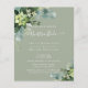 Modern greenery olive green bilingual wedding invitation, add the invite details in a two languages, one each side.