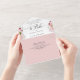 Elegant Pink, Blush and Burgundy Floral All-in-One Wedding invitation in Spanish with perforated RSVP and photograph. Also available in English. Environmentally friendly as there is no need for extra insert cards, RSVP cards or even envelopes, this invitation has it all! Ability to add both Wedding Ceremony and Reception details, as well as RSVP postcard ready for guests to fill in and mail! Gorgeous design with exquisite watercolor floral details in a beautiful combination of pink, blush, burgundy, cream, hues and delicate faux rose gold details. Ability to add your own photograph on the back. Same invitation with area for printed (or hand write later) guest name or a phrase on the back, instead of photograph also available. Attractive design ideal for the elegant, yet practical and eco-friendly couple!