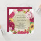 Delight your guests with this elegant quinceañera invitation in Spanish with beautiful watercolor red peonies flowers, sunflowers and a few blush roses. Center in golden texture. Back with red background with dainty sparkly lights. Ability to add your mass and reception details, which for events with no mass ceremony can be changed to reception and dance details.