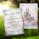 Send enchanting Save the Date/ Reserva La Fecha invitations with our fairy tale-themed designs in Spanish, perfect for setting the stage for a royal celebration. These exquisite invitations feature a vintage illustration of a stunning blue and white castle, complete with majestic towers, nestled against a dreamy sky in shades of light blue, pink, and purple. A crystal-clear moat and lush, vibrant gardens add an extra touch of elegance, creating a magical atmosphere. Our customizable Save the Date template allows you to personalize most of the text to perfectly match your wedding details. Whether you're planning a princess-worthy wedding or a fairytale-themed gathering, these Save the Date cards will captivate your guests and prepare them for an unforgettable occasion. Embrace the magic of your special day with invitations that promise a celebration fit for royalty.