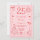 Spanish Retro Quirky Red Pink 25th Birthday Invitation