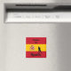 Soccer player using dot as a ball, Spanish flag in the background. Customizable: change the jerseynumber and name to your own