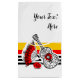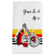 Whimsical design drawn in a retro style featuring souvenirs from a Spanish holiday; a wrought iron guitar, lacy fan and red rose on a striped background. A customizable design in black, white, red and golden yellow for you to personalise with your own text, images and ideas. An original digital art image.